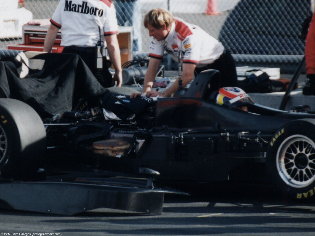 I even got a glimpse of the new lightweight compactMercedes/Ilmor motor and a little bit of the rear suspension. Hey, this spy stuff is fun. So when do I get paid?