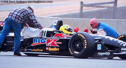 ©1999 SpeedCenter Publishing All photos ©1999 Dave Gallegos Photos taken on January 20 at Laguna Seca Raceway reveal some new details about two cars. Christian Fittipaldi's Swift will feature a new sponsor logo, plus some slight paint scheme changes. Al Unser Jr.'s Penske revealed slight aerodynamic changes around the air intakes. The bigger news for Penske is the sponsor logo on the car: for the first time in 1999, the car has now been seen with Marlboro sponsorship. Statements by crew members also support that Marlboro will be backing a one car Team Penske in 1999.