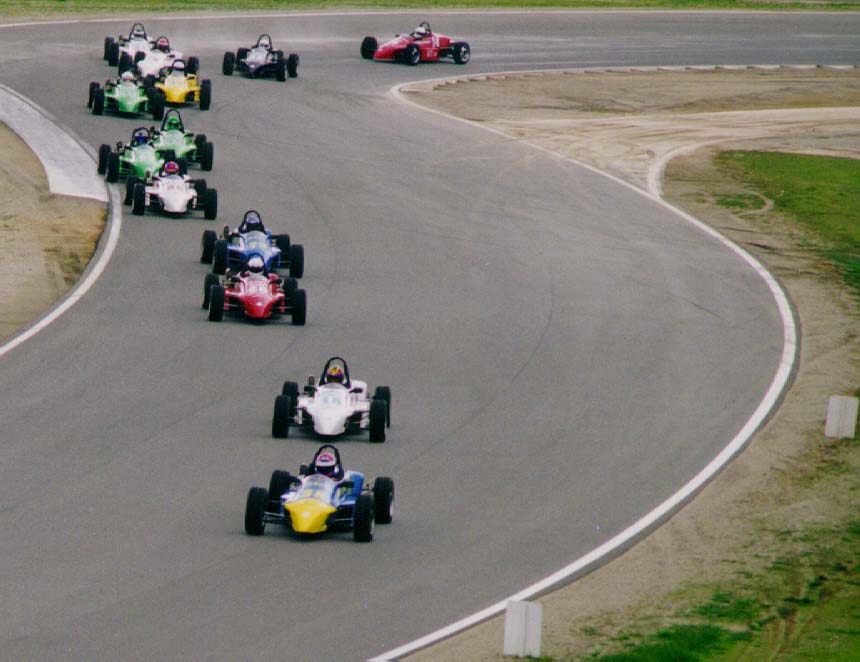 While MHP and I were having our battle royal, Woods and Yasukawa were having one of their own in front of us. At the very end, it was super close, but Yasukawa took a 0.1 second win with Woods right on his gearbox. I have to say this was my best weekend yet! Two decisive wins by 15-seconds, and a memorial race that I spent more time side by side in the turns than nose to tail! Definitely my favorite weekend so far. Not quite the emotion of my first win at Phoenix, but this weekend brought a lot of clarity and unshakable confidence to my racing. Even thought I've done well all year, there was still a small question mark in my mind as to how good I really was. Now, there is no question whatsoever in my mind, I have my sights set on making a career change from software engineer to professional racecar driver. A sobering thought that frequently goes through my head is, "If I don't find a sponsor by the end of this season in May, I don't race anymore." How's that for motivation! This year has taught me quite a bit, and I have been a sponge, soaking up as much racing knowledge as possible. I have really been blessed with an exponential learning curve at racing - having a great feel for a racecar and being able to post some of the top times at every track we've been to. My goals now are well defined. I will definitely run more Formula Dodge races across the country to learn a lot of the tracks like Mid-Ohio, Sebring, Road America, etc. I am also going to try and run as much Pro racing as possible in 1998 to learn car setup and get used to cars with wings and slicks. For this, I'm mainly looking at the Barber Dodge Pro series and the Formula Mazda series. Next year, in 1999, I plan to race the entire Barber Dodge Pro series - that is the main focus for my team. Any and all racing in 1998 is purely for preparation. The more practice I can get before the 1999 season, the better my 1999 results will be. With these plans and goals in place, now begins the great sponsor search. As we speak, I'm sending out sponsor proposals to prospective companies. I'm first starting with the "big ones". My hope is that they will welcome the opportunity to sponsor a rising talent to complement their current racing sponsorships. But, of course, I don't want to leave any stone unturned, so I will be sending proposals to just about every company I can think of that advertises nationally.