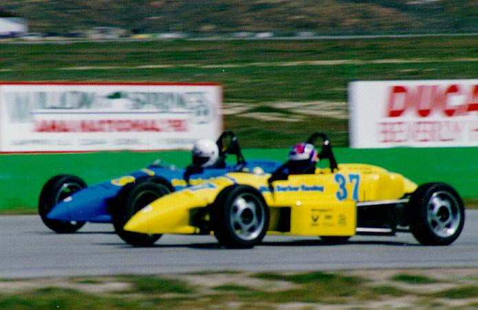 This is where that evil mistress Lady Luck came into the scene. The current lineup was P cubed in the lead, Puro second and me third with Mike Morris a ways back. Going out of T5, Puro took it a little hot and dipped one wheel .two wheels .three wheels .and he got sideways and spun across the track at 70mph right in front of me. I hit my brakes jerked the wheel to the right and BARELY missed him. This put Puro back to last when he pitted and re-entered the track. This got Mike Morris right on my tail and P cubed had a significant lead. I thought I had dodged the bullet Lady Luck had fired at me .little did I know she had more ammo. In a few laps I was able to stretch out from Morris and I caught back up to P cubed's tail. Peter and I had some dicing for the next few laps, but with 6 to go, my nightmare became reality. It was the first time Peter had run up front, and I'm sure he was nervous, not being used to the constant pressure of running with the leaders. Whatever the impetus, P cubed took T5 too hot (similar to what Puro did previously, but Peter was in trouble earlier) and got sideways before the exit. The end result was that I had no where to go and barreled into him sideways, completely crippling both our cars to the tune of $1700 a piece. There I sat, fatally wounded by Lady Luck. Boy was I angry .hmm nah, I guess that's an understatement. The repercussions this had were catastrophic for my overall points standing. So I'm out, this is a throwaway meaning rather than using the 20 points I would get, I have to use a 12 (3rd place) for my points (we get 3 throwaways of 14 races). And, to ice the cake, the race was stopped to crane tow our cars away, allowing Puro (who I'm in a tight points battle with) to catch back up to the front pack and win the race, Ack! So I'm sure some of you are wondering about the payment/responsibility aspect of this. Since this accident was not my fault, Skippy only holds me to $1000 for the crash instead of the normal $3900. Of course on my budget of VISAs, Master Cards, and the like, $1000 really hurts. Although I was upset with Peter for taking me out of contention and hurting my overall points situation, he was a class act and covered the $1000 bill that Skippy gave me. That definitely eased the pain somewhat, and I really appreciate Peter for doing that. Am I glad this is done. I don't think I need to tell you all how bad of a taste Willow Springs left in my mouth yuck. I will admit, all the drafting and tight side by side racing was a blast, but I definitely prefer a more technical course where passing actually takes some skill. With two bad races for me and two wins for Roger Yasukawa, that allowed him to clinch the championship this weekend instead of the Laguna finale. Roger ran a near perfect season and was a superb competitor - congratulations Roger! He is racing the Formula Palmer Audi professional series in England that started in April/May. Special thanks to my bud Lonnie Larkin for putting me up for the weekend at his house - that helped save me a few bucks, thanks bro! Next on "You Want to be a CART Racer?":