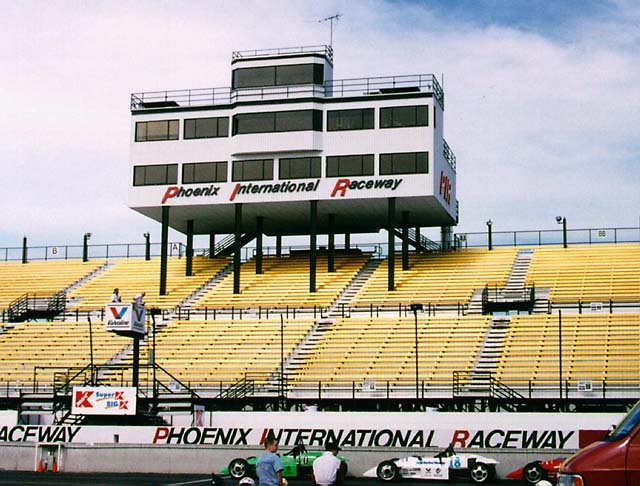| | Where the big boys race... | Getting used to the track was fun. At first the oval turn is a tad intimidating, and fun! It took a few laps to just stick the pedal to the floor and not budge. Turn 1 was by far, the most intimidating turn on the track. T1 comes off the banking into the infield. They changed it a bit from previous years, extending the pit wall making T1 pretty narrow. Right at the transition, there is a pretty big bump that unsettles the car, and if you don’t hit it straight on, you will spin the car – at about 115mph. I was a little bit out of form getting used to the track. I spun twice on Wednesday (the first practice day). That’s more than I ever have. The first was a total brainless spin. Turn 4 at Phoenix is a flat out turn, no lifting, but you have to hit it right, or you’ll go off the track at the exit. Well, I was thinking about the turn I just did, entered too sharp, stayed flat out, and….oops; I went off the track, lifted off the gas, and…c-ya, around I went. No big deal…just a little damaged pride. The second spin occurred a few laps later. I was used to the track, and there was a bit of discussion if turn 1 could be taken flat out, not even a breath off the gas. Well, I thought I’d try it, and I had the joy of turning too fast into T1 and spinning my car at 115mph, pretty darn hairy! That made a dent in my confidence, what a way to start the race weekend. I was a little concerned at that point. Luckily, the next lapping day went well – no unusual incidents, just lowering the times.  On Friday, everyone who is racing the weekend generally shows up. And, it was pretty amazing how some of the drivers went very fast right off the bat. Two of them were in my group, Randy Puro and Roger Yasukawa. The three of us were turning laps in the 1:10 range, making our group one of the two fastest groups out there. The rest of the day was pretty uneventful, just working on turning faster times.  | | From the pole... | Saturday morning’s practice went better than Friday. Roger Yasukawa turned the fastest lap of the practice, a few tenths faster than my best. From the instructor feedback (who was taking split times) he was making time on my in turns 2-5. Their description was that he was a little slower in T1-2, but had a better drive coming out of 2 and carrying it through T5. I talked with Roger for awhile and it turns out he has been racing karts and Formula Vauxhall Jr. in Europe for the past few years. Pretty tough competition.In one of the later groups, someone got loose coming off the oval to the front straight, and ended up spinning the car and hitting the inside wall pretty hard. It hit right in front of us in the pits and was pretty darn loud. Everyone ran over there to make sure the driver was okay. He was fine, but the car was toasted to the tune of about $6500…ouch! Unfortunately for our group’s polesitter, Randy Puro, this was his car. He had to switch to another car for the weekend, which means he would only get 3 warm-up laps in a new car; he wasn’t too excited about that. | | Leading the pack | My group, group 1, was first up for racing. On the grid, I was starting second with Randy Puro on the inside of me on pole. Roger was starting eighth since this was his first race and he didn’t have any points. Randy and I talked earlier and both agreed we wanted to check out and not battle right away so Roger couldn’t catch us. Going out on the pace lap, I was totally nervous (hey, I’ve only done this 2 other times!) Coming to the green, Randy brought the field to a slow pace, then gunned it at the exit of T11 (T4 on the oval). We all followed suit and were pretty spread out going into T1. The first two turns of a race at any track are a little tricky because you are used to going into them at full race speed, and we are slower than normal, so our markers need to change a bit. | In-car Videos: | I was right behind Randy in turns 2-7, then he got a good drive out of 7 and put a tenth on me going into turn 9, the hairpin leading to the oval. Apparently, it was time for a move. I was braking deep into T9 at my normal marker, but Randy, being in a new car, broke earlier. I closed up on him very fast, and I was going to hit his gearbox, so I swerved inside and made the pass for the lead. It was a little unexpected and I was surprised, but I had no problems with it ;-). We went through T9 and the back straight side by side, but I held the inside line going into the oval, so Randy decided to pull in behind me and try to catch a tow. I had 4 main areas I checked my mirrors – going into T2, exiting T7/8, exiting T9, and on the front straight. When I broke off enough of a cushion, I only checked exiting T9 and on the front straight. Checking my mirrors in these two places allowed me to gauge if 2nd place was gaining on me, falling back, or staying even. It let me know if I could cruise or had to step it up a notch.After 2 more laps, I saw Roger right behind Randy. On the next lap, Roger was in front of him – Randy must have let him by to draft with him and run me down! I had about a 2-second cushion, and in the next few laps that didn’t really change. With about 6 to go, I knew I was home free as long as I didn’t make a huge mistake or have any mechanical bugs. With 3 to go, I looked in my mirrors and Randy was behind me, not Roger. “Hmm,” I though, “He didn’t pass me without me knowing it….he must have broke down, spun, or gone 4 wheels off the track.” With 1 lap to go, I saw the white flag waving. I was so excited; I almost started pumping my fist in the air right then! Coming on the last lap, I saw the checkered and raised my fist high…victory!As I came into the pits, I was congratulated by all the mechanics. They motioned me to start/finish where I was given the checkered flag to do a victory lap since it was my first Formula Dodge win. What a great day, I was elated. I don’t think I stopped smiling the rest of the day