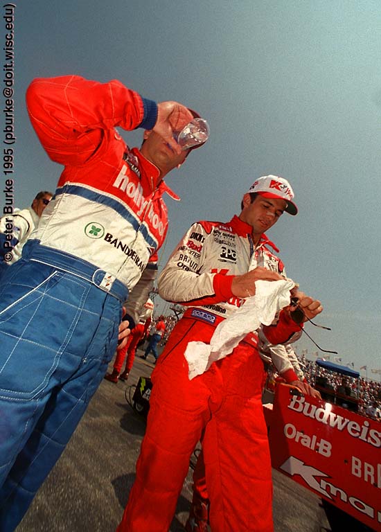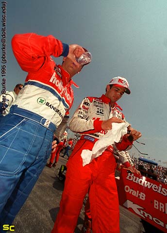 Mo and Christian taking care of the essentials right before the start: water and looking cool...