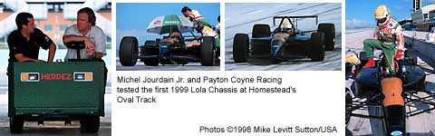 ©1998 SpeedCenter Internet Publishing, Inc. Photos Courtesy Sutton/USA Herdez backed driver Michel Jourdain Jr. wrapped up at the 1.5 milecircuit of Homestead in Florida, his first official testing with the newpackage for the 1999 FedEx Championship Series season: a Lola chassiswith Ford-Cosworth engine and Firestone tires.