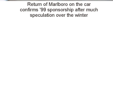 ©1999 SpeedCenter Publishing All photos ©1999 Dave Gallegos Photos taken on January 20 at Laguna Seca Raceway reveal some new details about two cars. Christian Fittipaldi's Swift will feature a new sponsor logo, plus some slight paint scheme changes. Al Unser Jr.'s Penske revealed slight aerodynamic changes around the air intakes. The bigger news for Penske is the sponsor logo on the car: for the first time in 1999, the car has now been seen with Marlboro sponsorship. Statements by crew members also support that Marlboro will be backing a one car Team Penske in 1999.